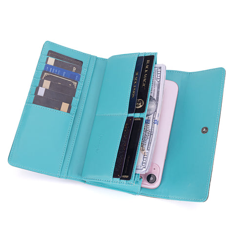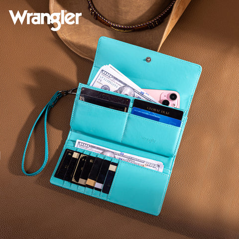WG196-W056 Wrangler Western Floral Tooled Tri-fold RFID Wallet/Wristlet - Turquoise