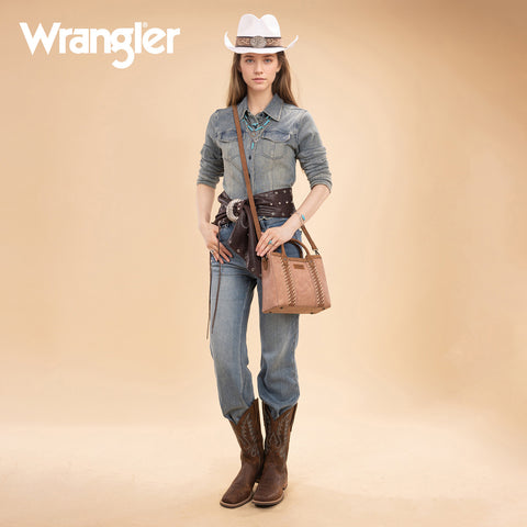WG217-889 Wrangler Braided Whipstitch Top Handle Small Tote/Crossbody