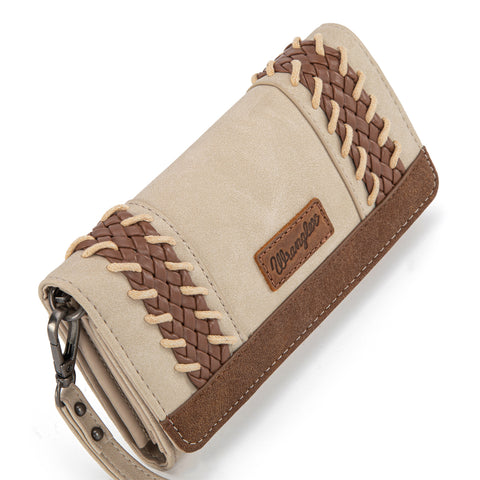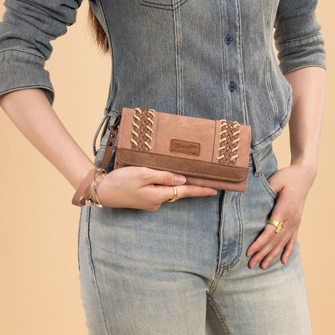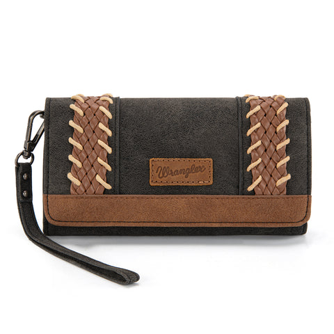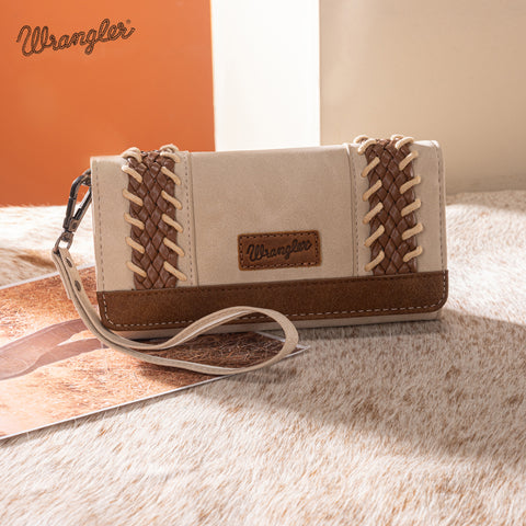 Classic western style meets everyday function. This Wrangler wristlet wallet features beautifully braided faux leather panels with whipstitch details for a timeless, rustic look. Made of PU leather , this...