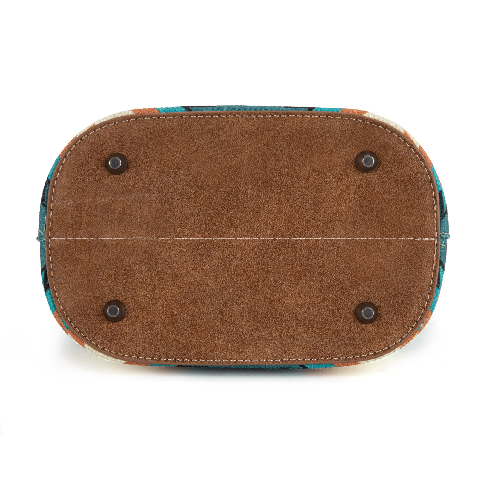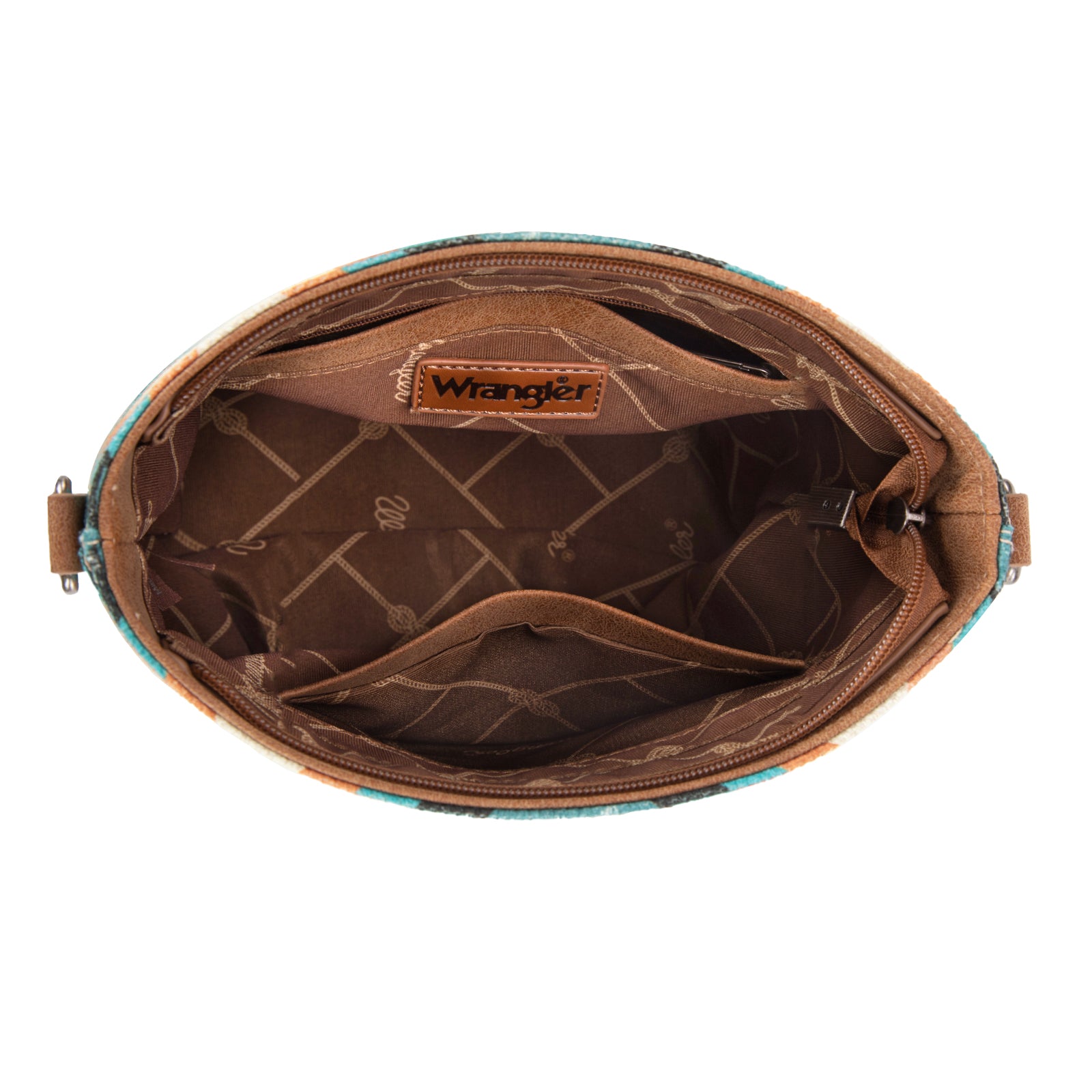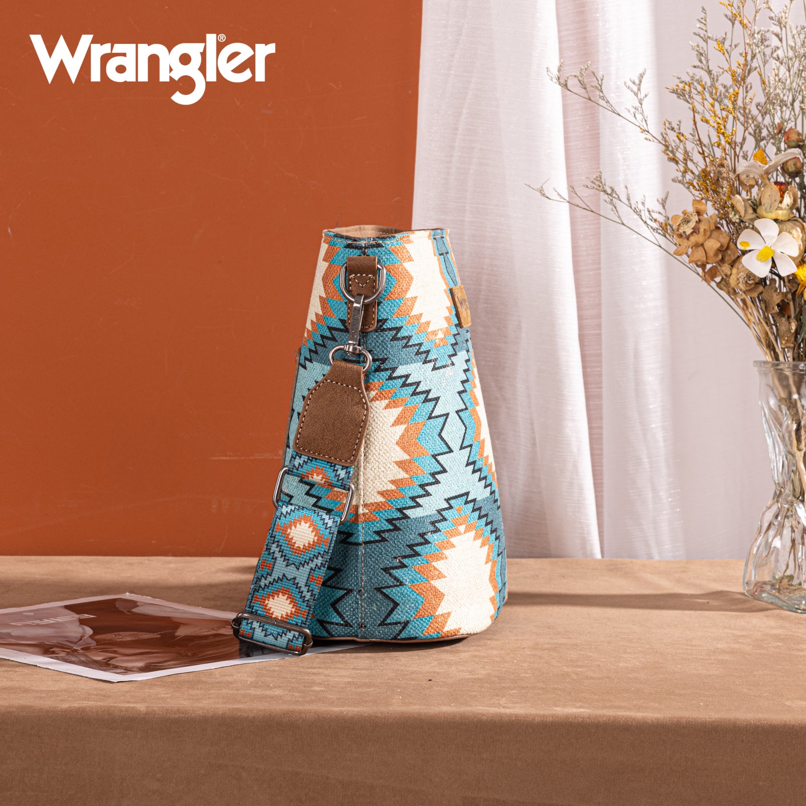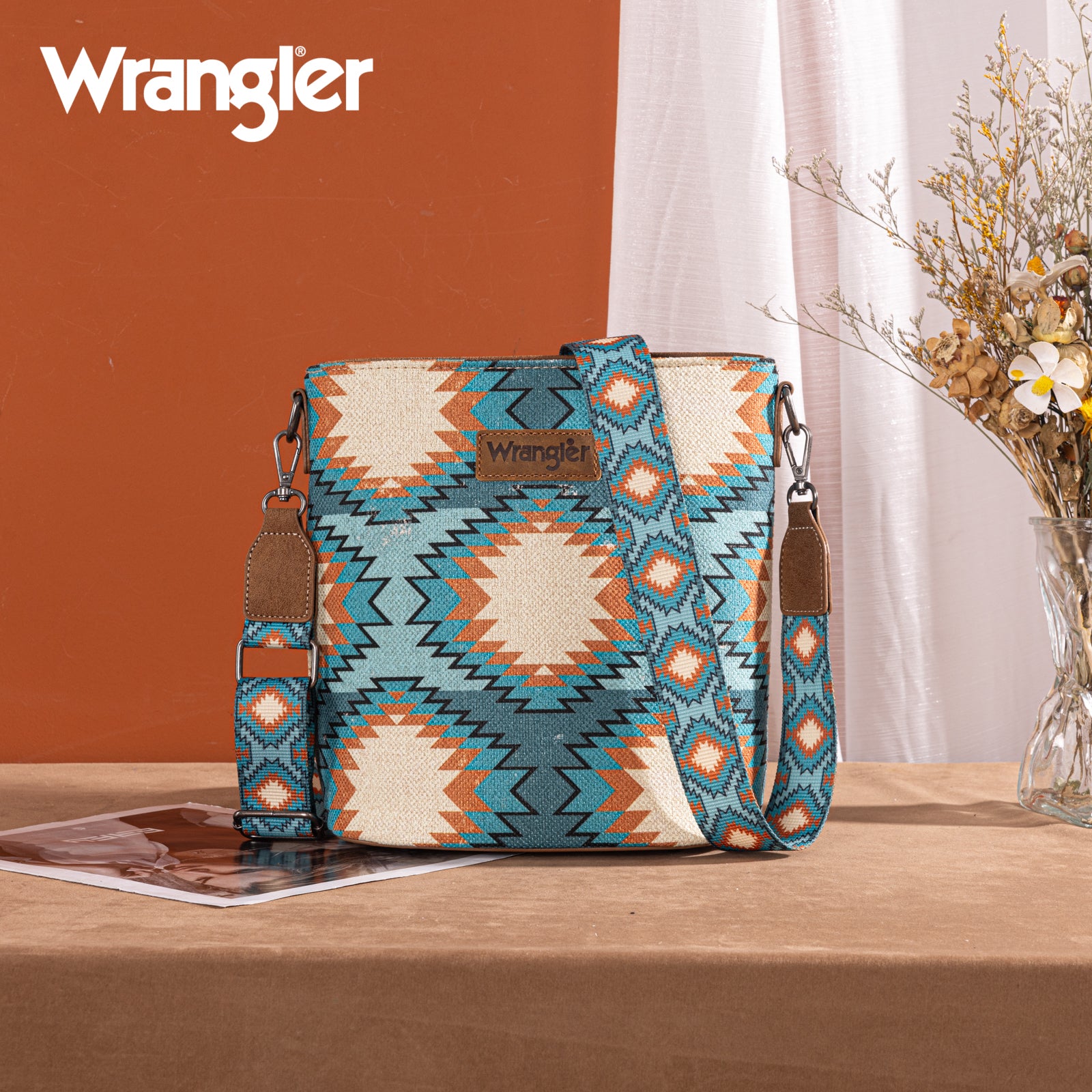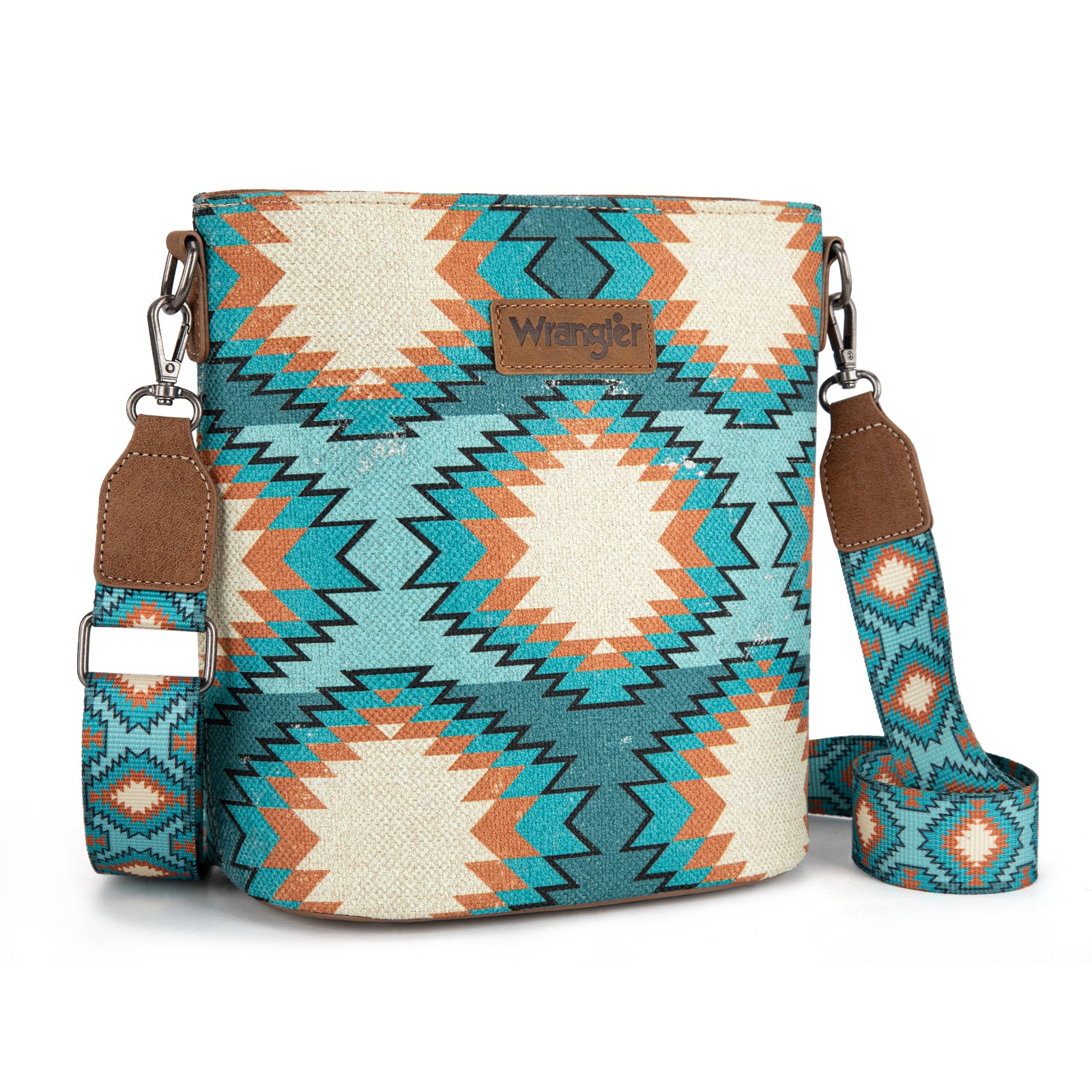 WG221-8360 Wrangler Aztec Distressed Print Dual Sided Print Crossbody-Turquoise