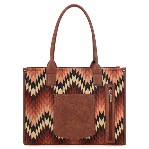 WG2211-8119 Wrangler Southwestern Pattern Dual Sided Print Concealed Carry Wide Tote - Brown