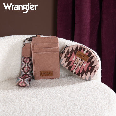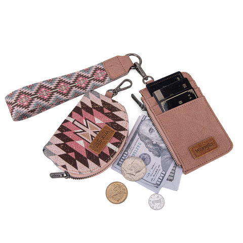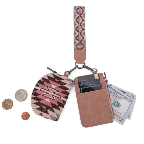 WG2213-W0051 Wrangler Southwestern Art Print Dual Pouch Wristlet -Dark Pink