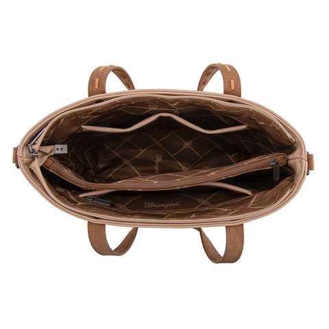 WG233-2009 Wrangler Aztec Embroidered Tote/Crossbody Bag- Tan