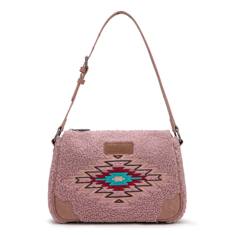 WG263-2022 Wrangler Sherpa Aztec Sherpa Hobo/Shoulder Bag - Dark Pink