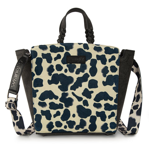 WG264-8014BK Wrangler Cow Print Concealed Carry Tote/Crossbody - Black