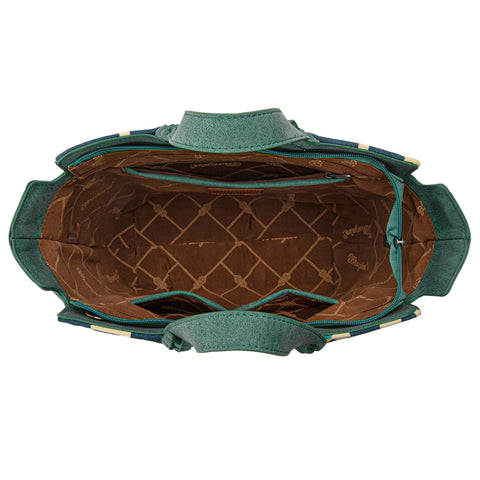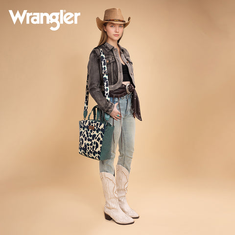 WG264-8014DTQ Wrangler Cow Print Concealed Carry Tote/Crossbody- Dark Turquoise
