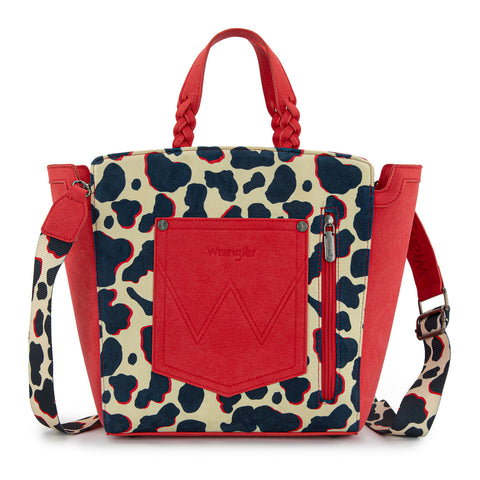 WG264-8014RD Wrangler Cow Print Concealed Carry Tote/Crossbody - Red