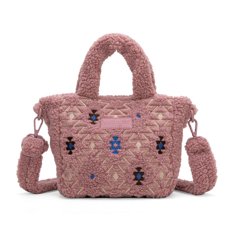 WG266-8015 Wrangler Sherpa Aztec Sherpa Small Tote/Crossbody - Dark Pink