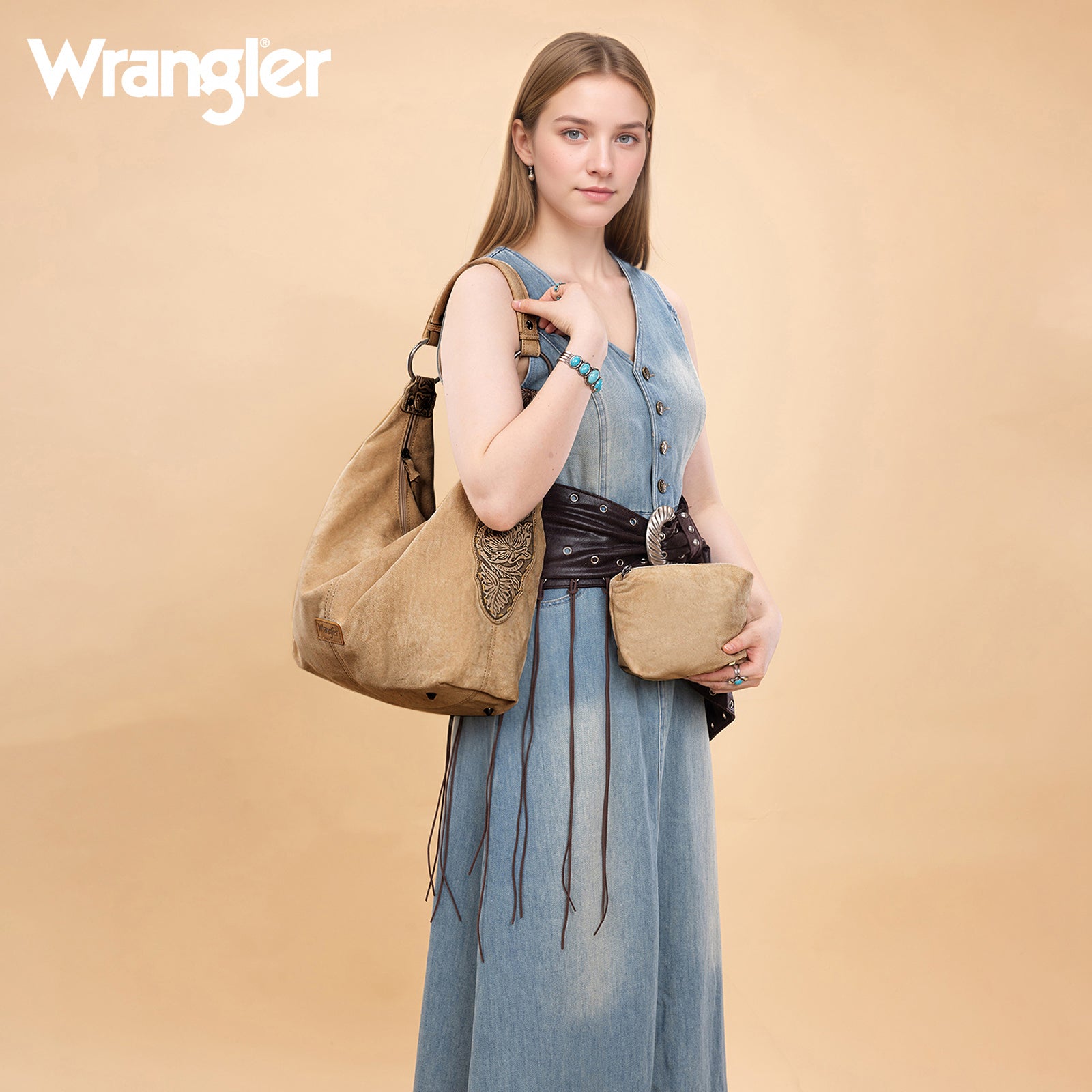 WG276-9182 Wrangler Floral Tooled Hobo Bag with Pouch-Khaki