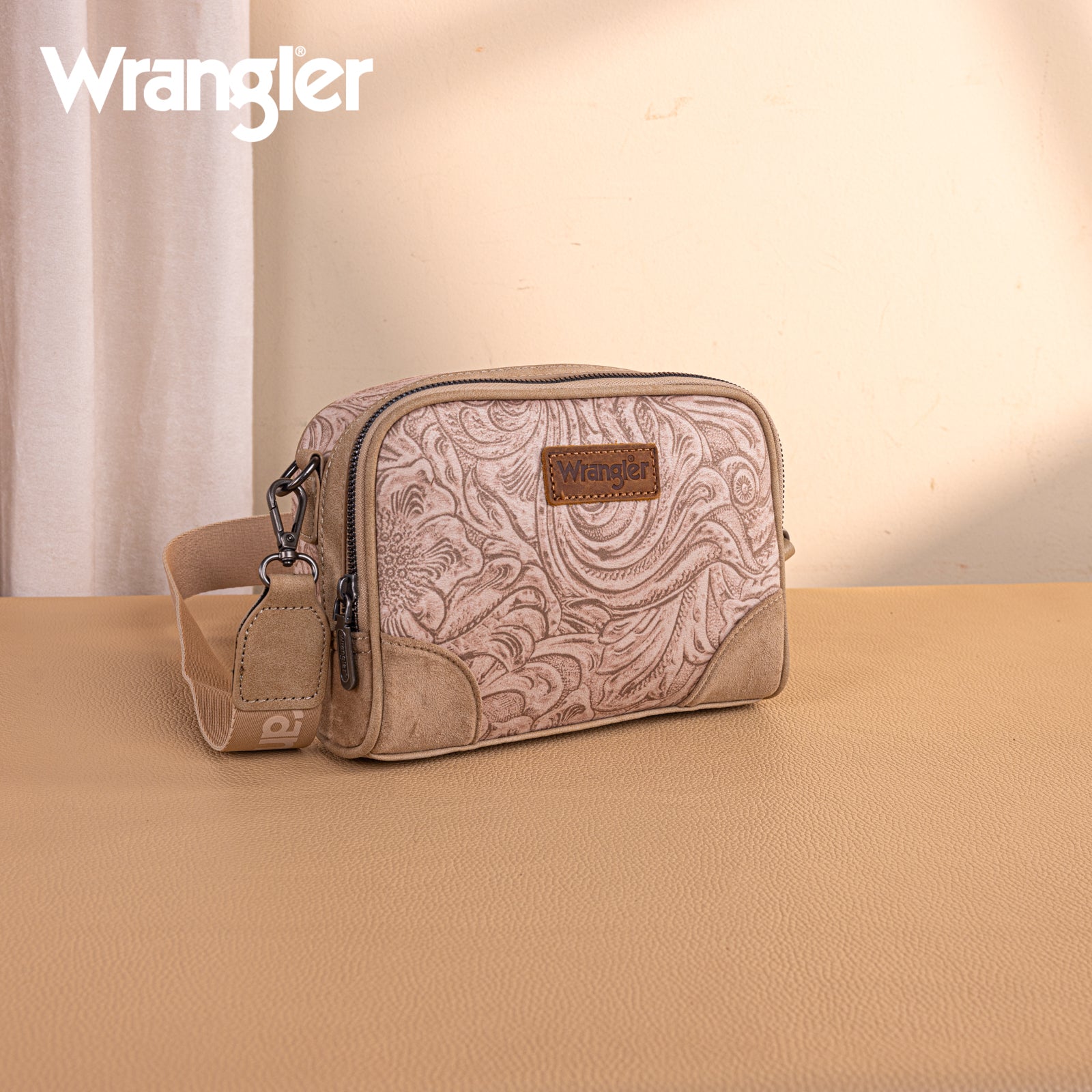 WG277-1833KH Wrangler Vintage Floral Printed Small Crossbody Bag - Khaki