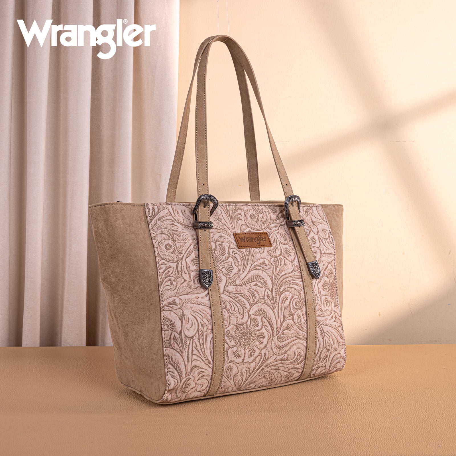 WG277-2002KH Wrangler Vintage Floral Printed Large Tote Bag - Khaki