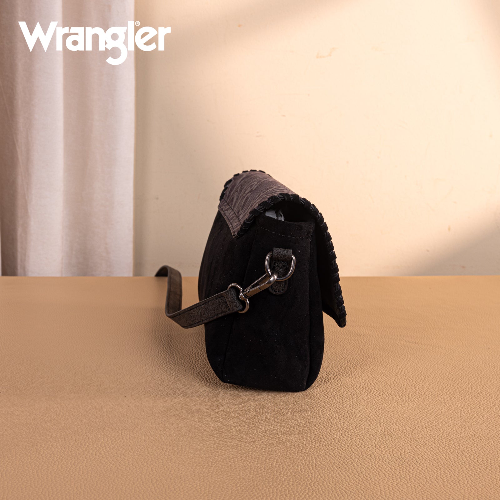 WG277-236BK Wrangler Vintage Floral Printed Crossbody Bag with Small Pouch- Black