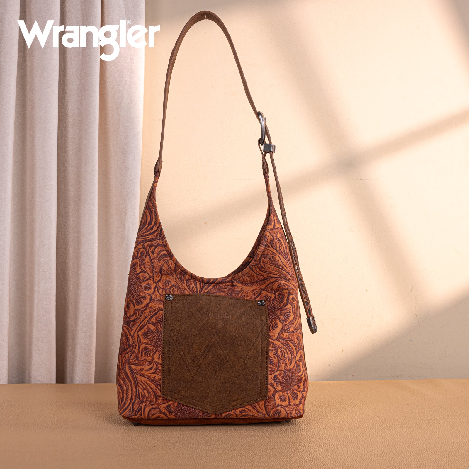 WG277-9182BR Wrangler Vintage Floral Printed Hobo Bag-Brown