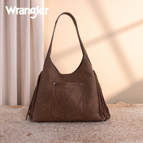 WG279-9182CF Wrangler Fringe Floral Tooled Hobo Bag-Coffee