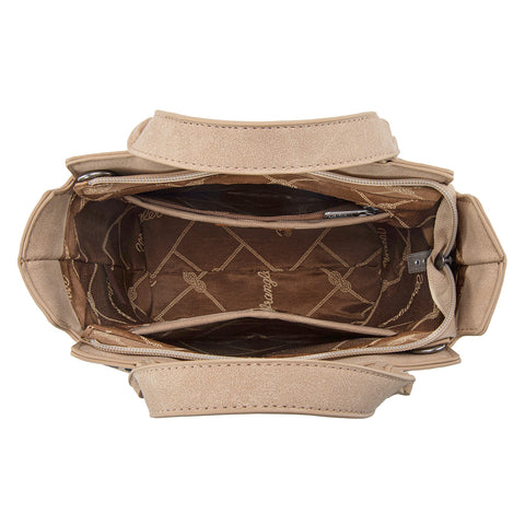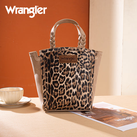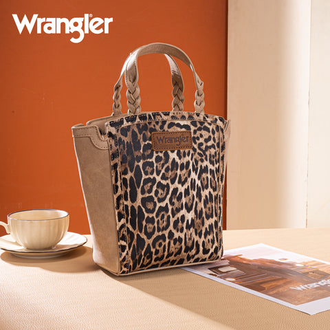WG296-8014TN Wrangler Leopard Print Braided Handle Tote/Crossbody - Tan