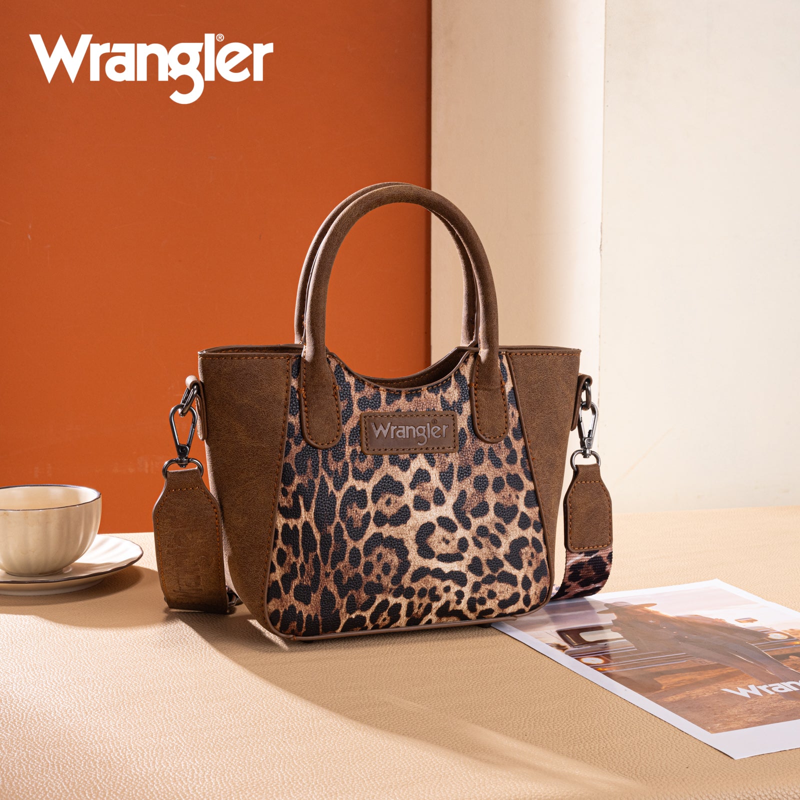 WG296-8015BR Wrangler Leopard Print Small Tote/Crossbody -Brown