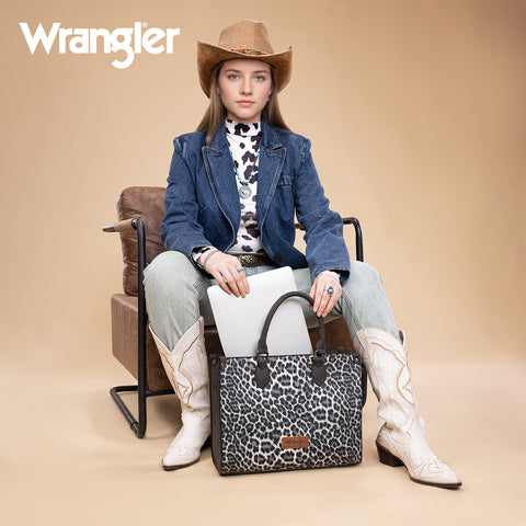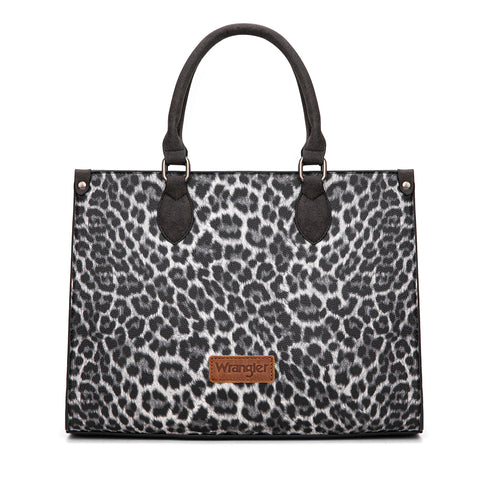 WG296-8625BK Wrangler Leopard Print Wide Tote Bag/Crossbody- Black