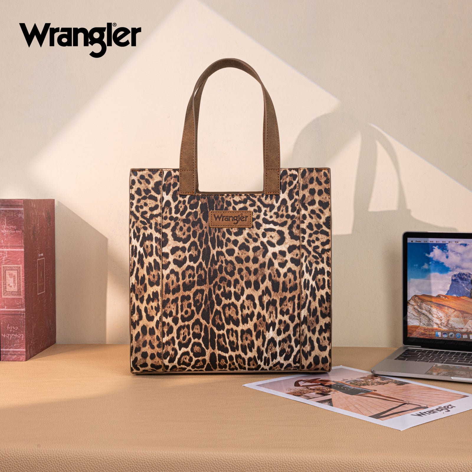WG296-8900BR Wrangler Leopard Print Tote Bag- Brown