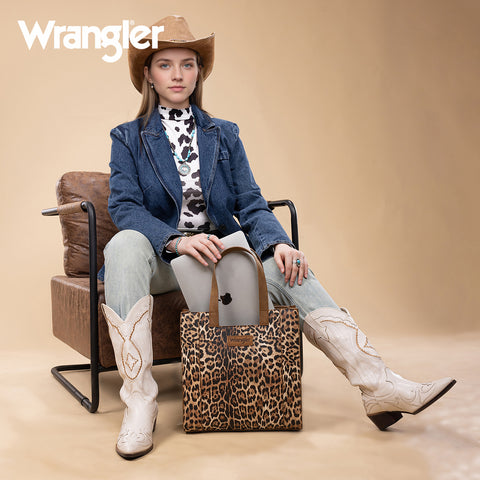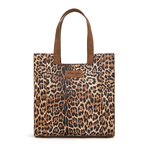WG296-8900BR Wrangler Leopard Print Tote Bag- Brown