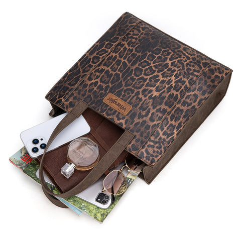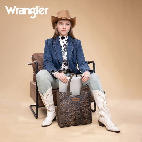 WG296-8900CF Wrangler Leopard Print Tote Bag- Coffee