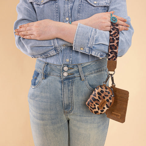 WG296-W0051 Wrangler Leopard Print Dual Pouch Wristlet -Brown