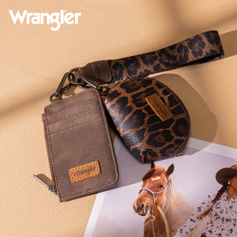 WG296-W0051 Wrangler Leopard Print Dual Pouch Wristlet -Coffee