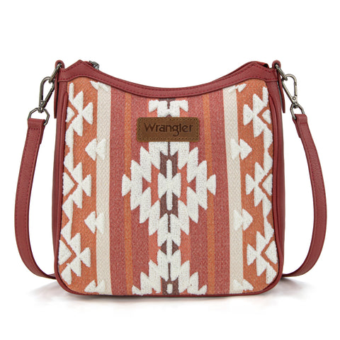 WG313-2003 Wrangler Sherpa Aztec Canvas Crossbody - Burgundy