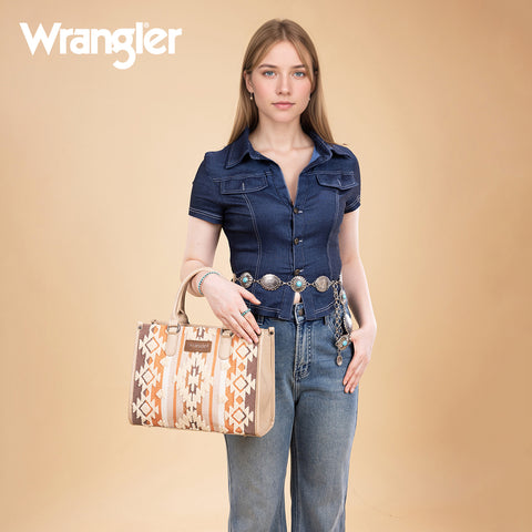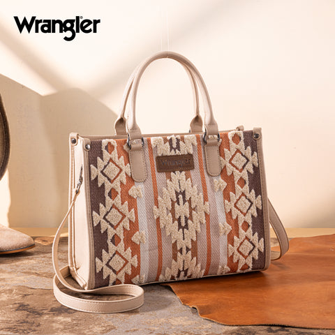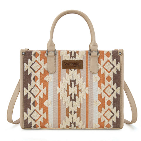 WG313-8119 Wrangler Sherpa Aztec Canvas Tote/Crossbody - Tan