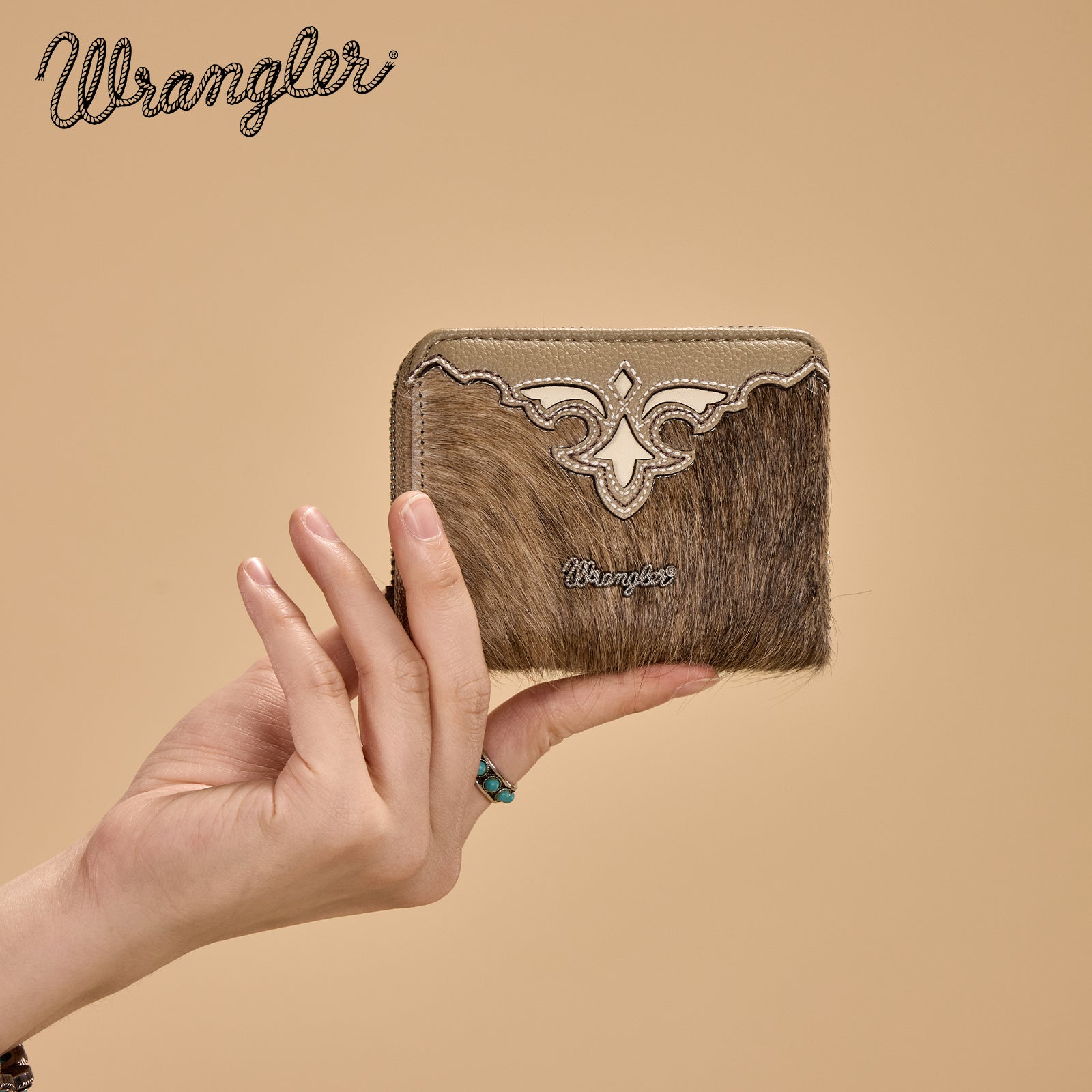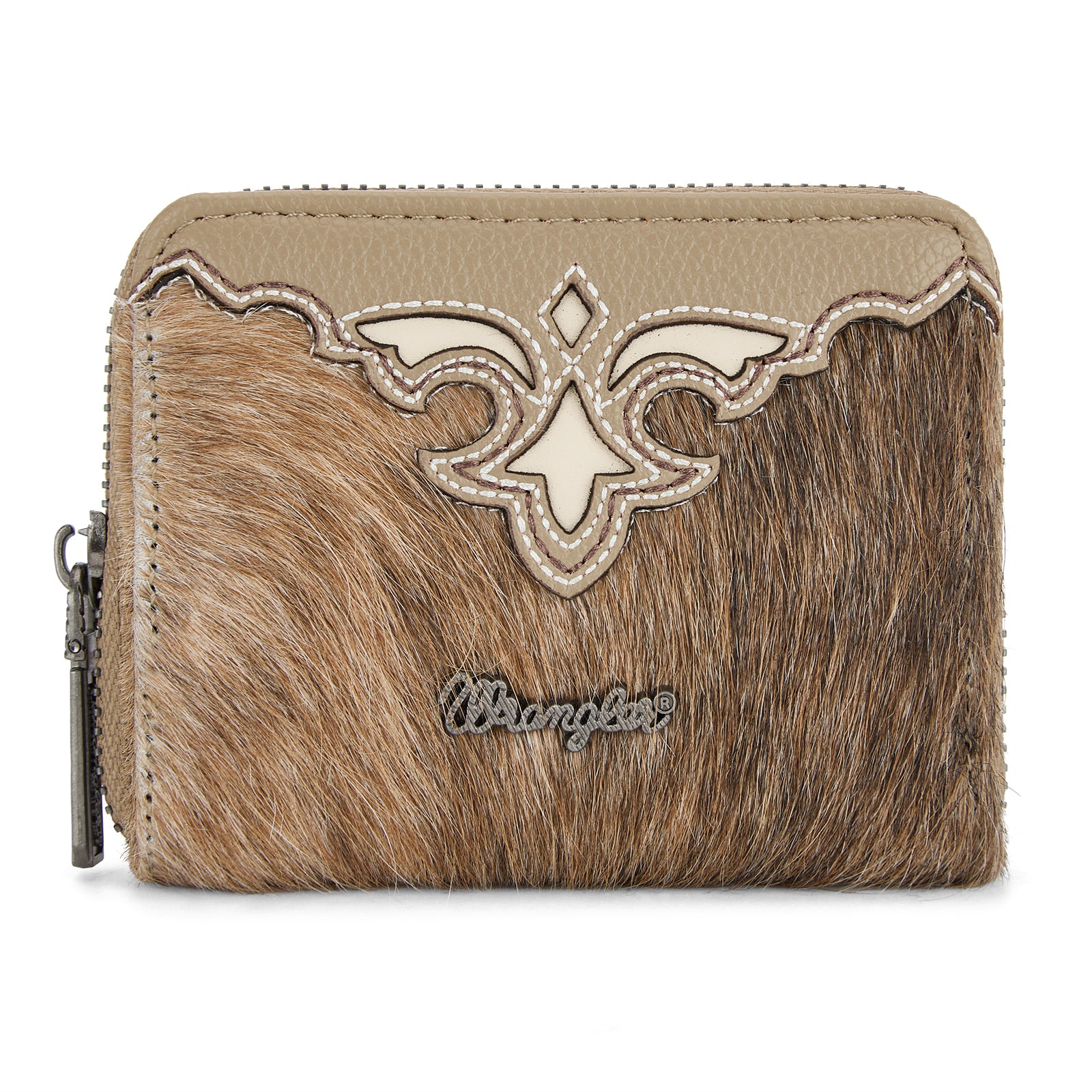 WG322-W088 Wrangler Genuine Hair-On Cowhide Zip-Around Wallet - Khaki