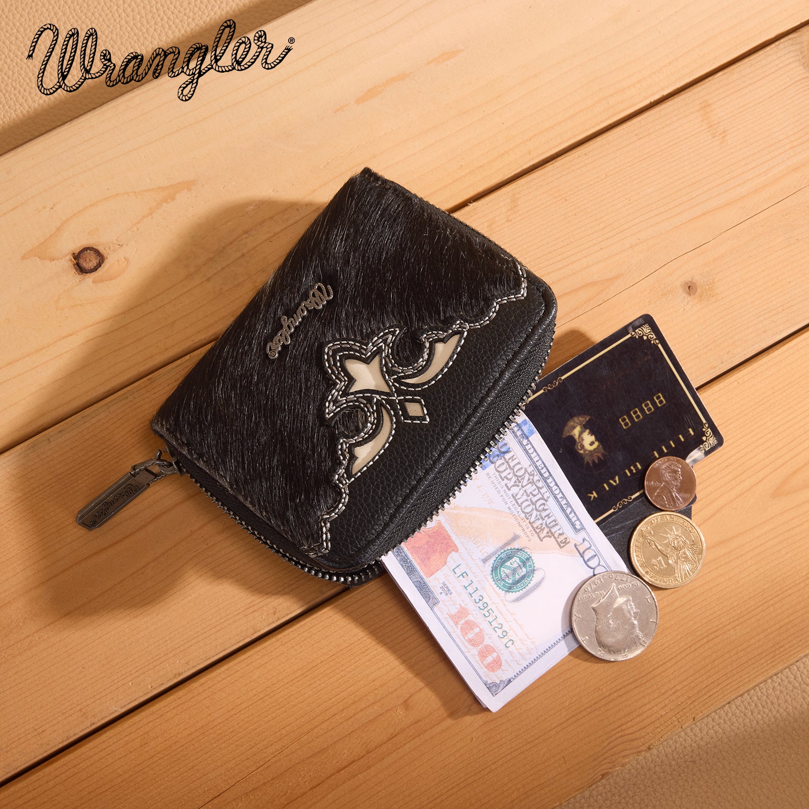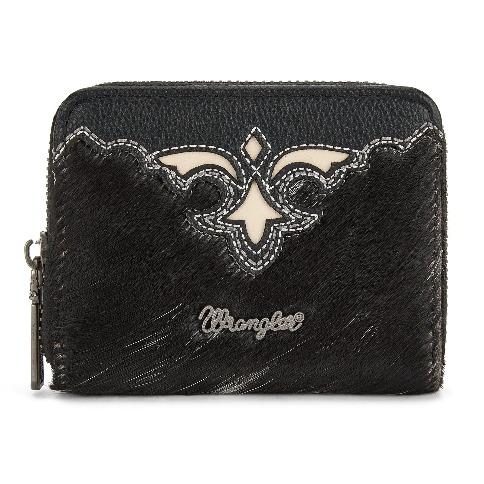 WG322-W088 Wrangler Genuine Hair-On Cowhide Zip-Around Wallet - Black