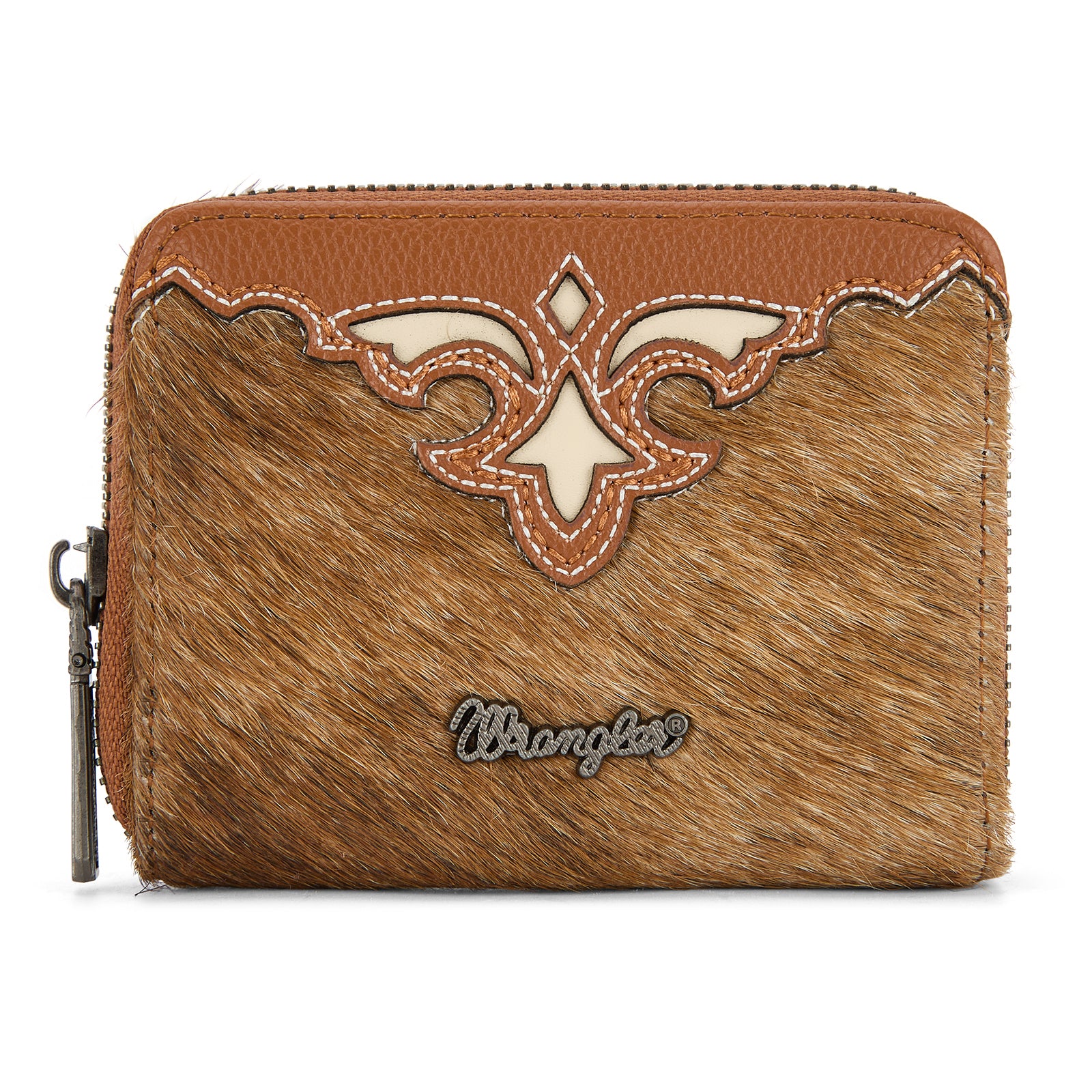 WG322-W088 Wrangler Genuine Hair-On Cowhide Zip-Around Wallet - Brown