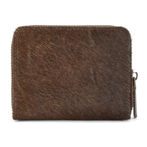 WG322-W088 Wrangler Genuine Hair-On Cowhide Zip-Around Wallet - Coffee