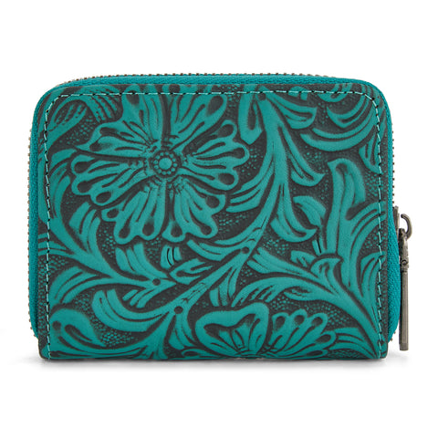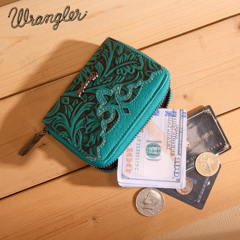 WG322-W089 Wrangler Tooled Zip-Around Wallet - Turquoise