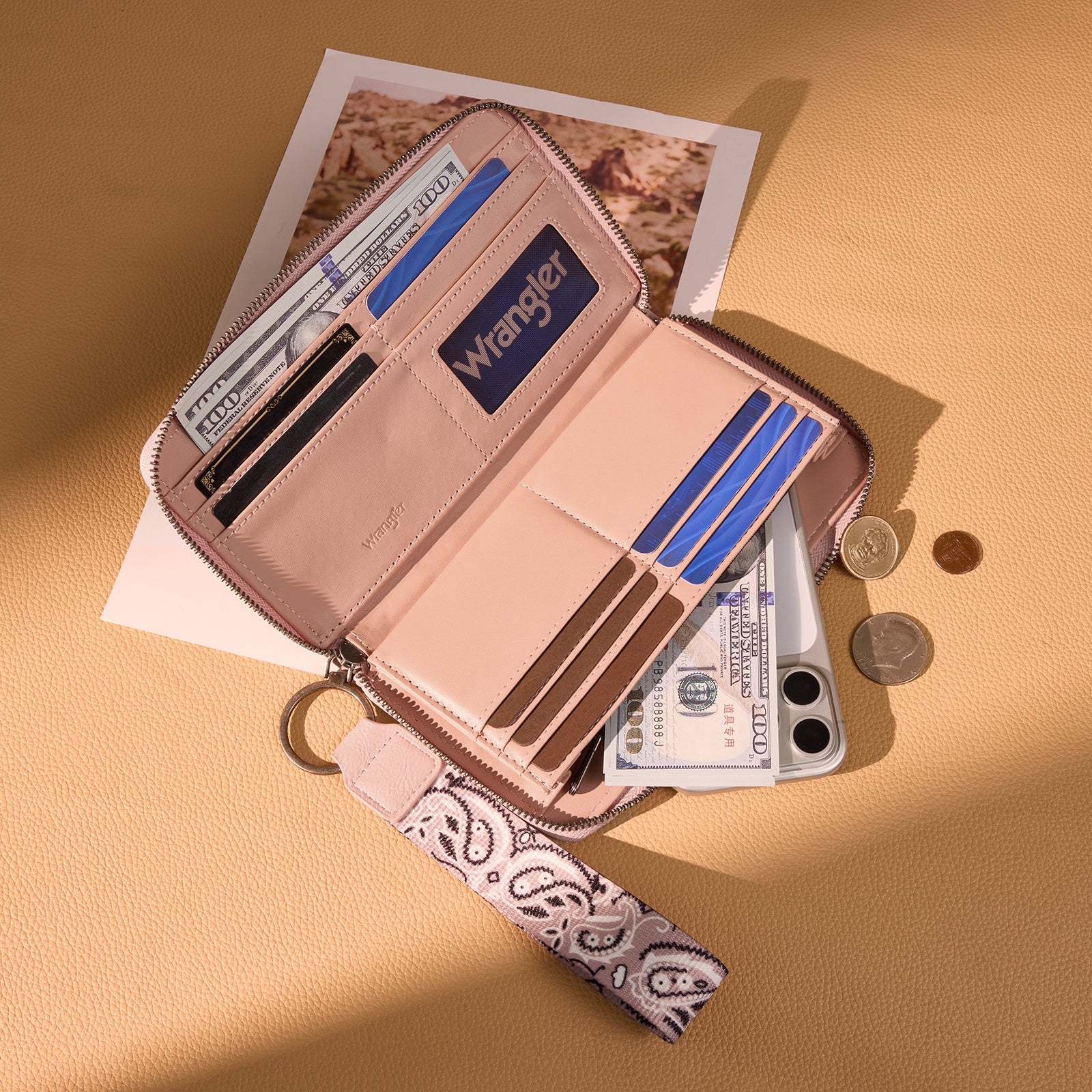 WG331-W115 Wrangler Bandana Paisley Print Wallet - Pink