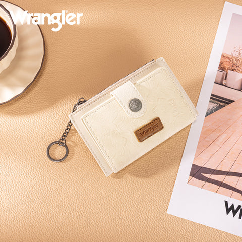 WG338-W099 Wrangler Floral Embossed Bi-fold Wallet with Key Ring - Beige