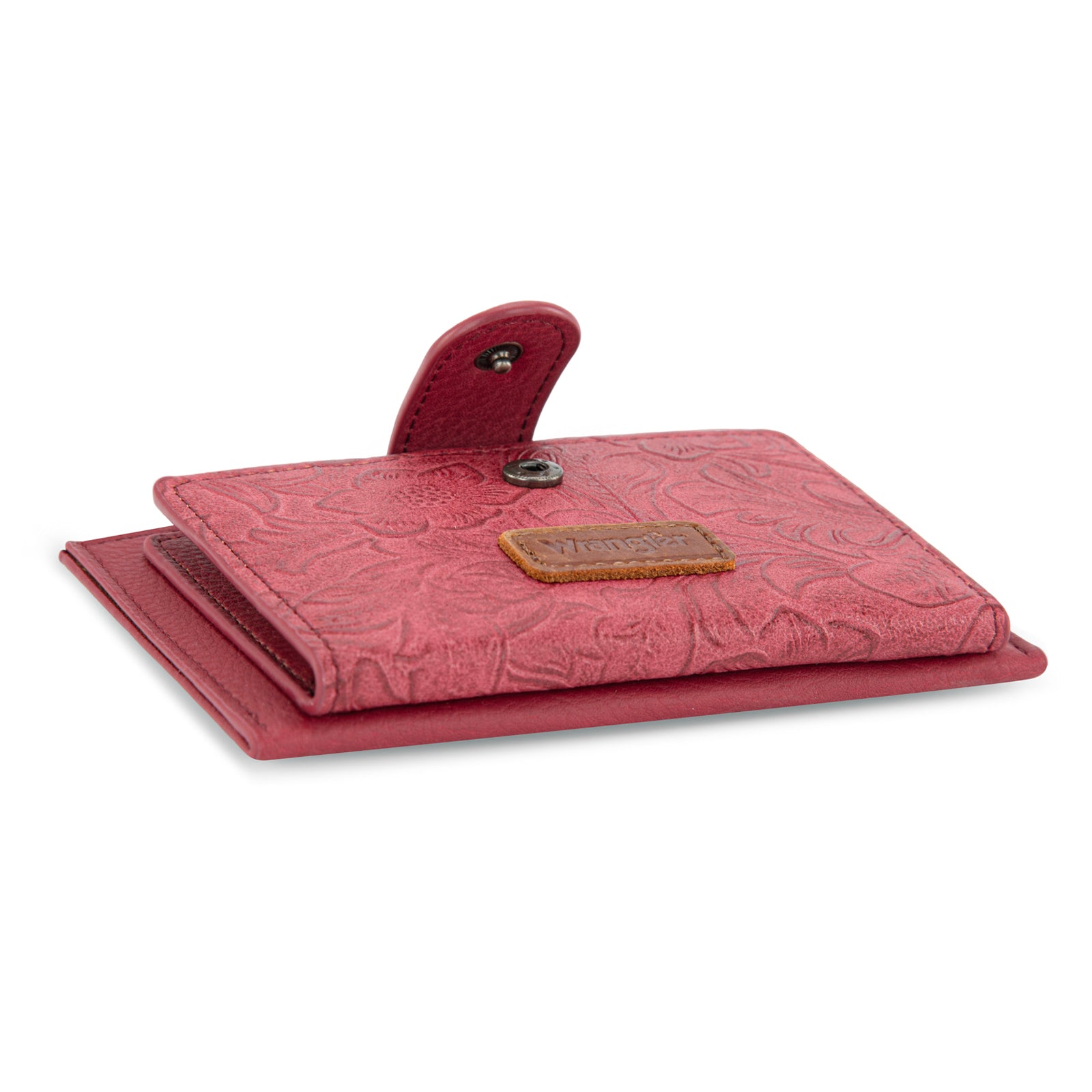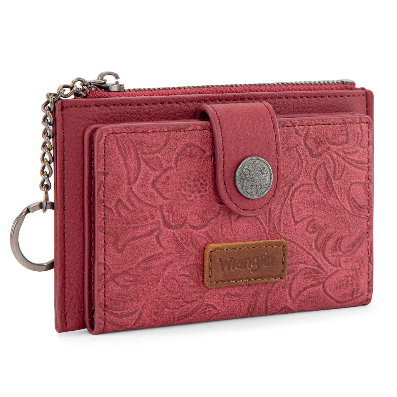 WG338-W099 Wrangler Floral Embossed Bi-fold Wallet with Key Ring -Burgundy