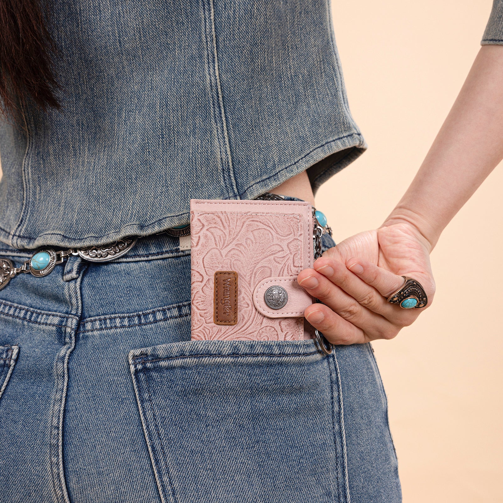 SKU:WG338-W099DPKThis Wrangler floral embossed leather wallet features a soft, distressed finish with detailed tooling for a timeless rustic look. Compact yet surprisingly spacious, it’s designed to keep your essentials organized while adding a touch of Western charm.