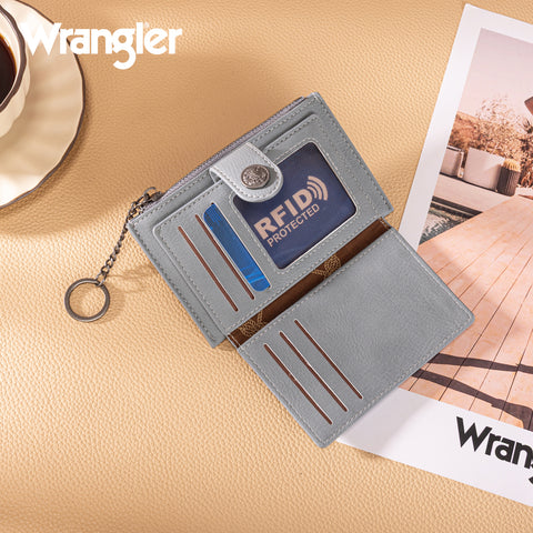 WG338-W099 Wrangler Floral Embossed Bi-fold Wallet with Key Ring -Jean