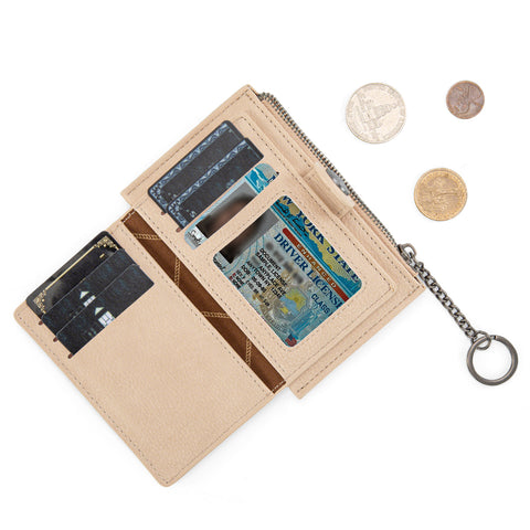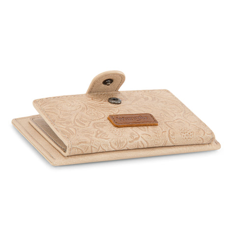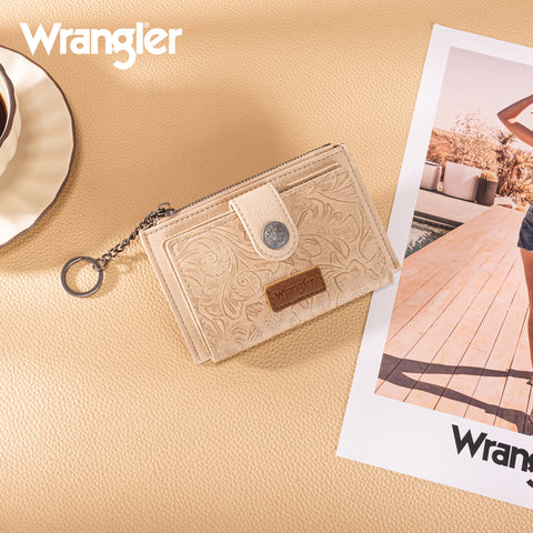 WG338-W099 Wrangler Floral Embossed Bi-fold Wallet with Key Ring -Tan