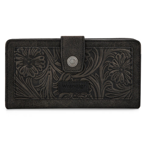 WG339-W080 Wrangler Western Floral Tooled RFID Wallet -Black