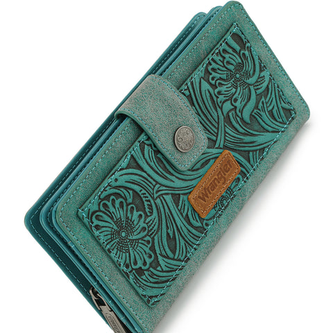 WG339-W080 Wrangler Western Floral Tooled RFID Wallet - Turquoise