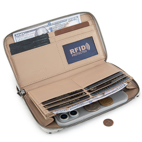 WG366-W006BG Wrangler Leopard Print Wallet/Wristlet - Beige