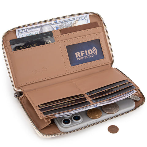 WG366-W006TN Wrangler Leopard Print Wallet/Wristlet - Tan