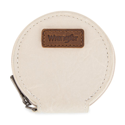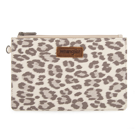 WG366-W114 Wrangler Leopard Print Dual Pouch Wristlet with Zipper Round Case- Beige