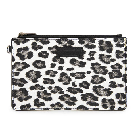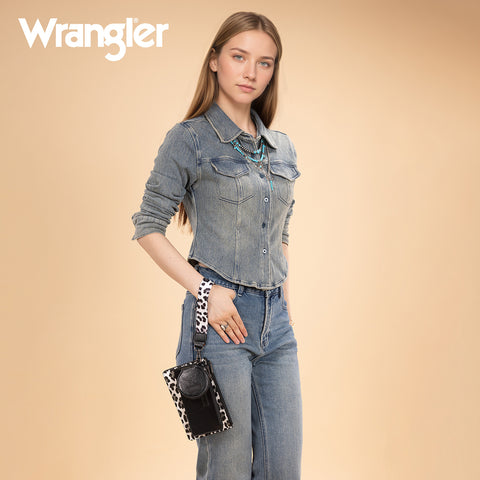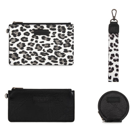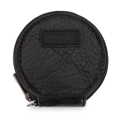 WG366-W114 Wrangler Leopard Print Dual Pouch Wristlet with Zipper Round Case- Black