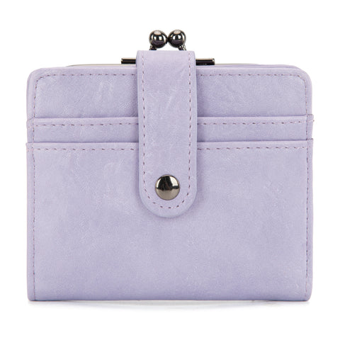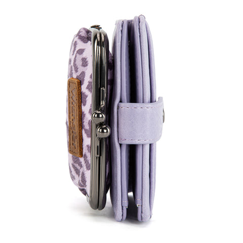 WG366-W116PP Wrangler Western Leopard Print Small Bi-Fold with Kiss Clasp Coin Purse -Purple