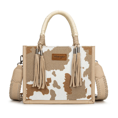 WG386-8120S Wrangler Cow Print Tote/Crossbody -Tan