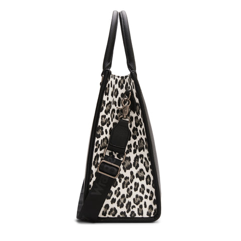 Wrangler Leopard Print Side-Panel Tote with Logo Crossbody Strap Add Western flair to your everyday look with this Wrangler tote bag, designed with bold leopard print side panels and smooth PU...