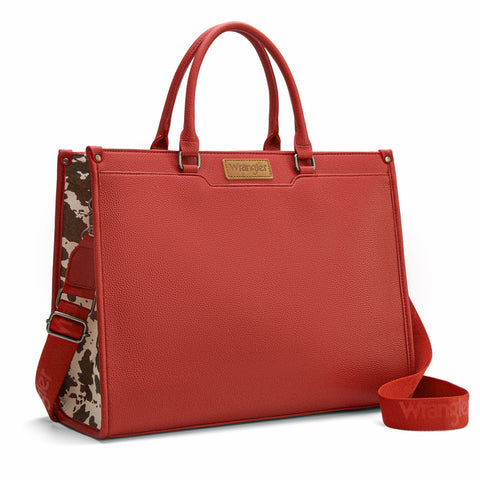 Wrangler Cow Print Side-Panel Tote with Logo Crossbody Strap Add Western flair to your everyday look with this Wrangler tote bag, designed with bold cow print side panels and smooth...