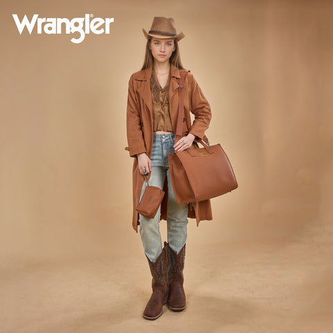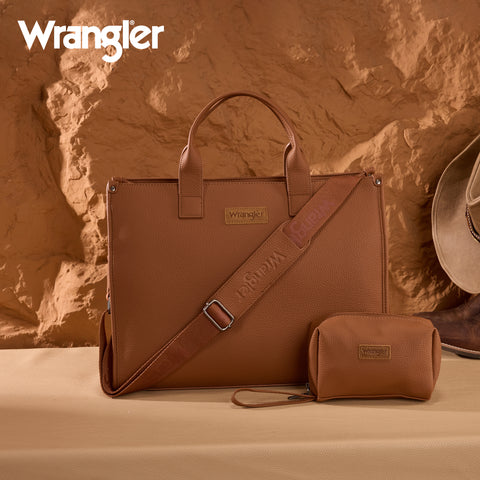 WG390-8110 Wrangler Structured Work Tote/Large Carry-All Tote/Crossbody with Pouch - Brown